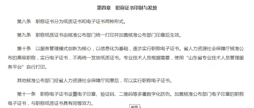 2018年12月,山东省人力资源社会保障厅印发《山东省职称证书管理办法》,提出:高级职称实行电子证书,不再统一发放纸质证书。