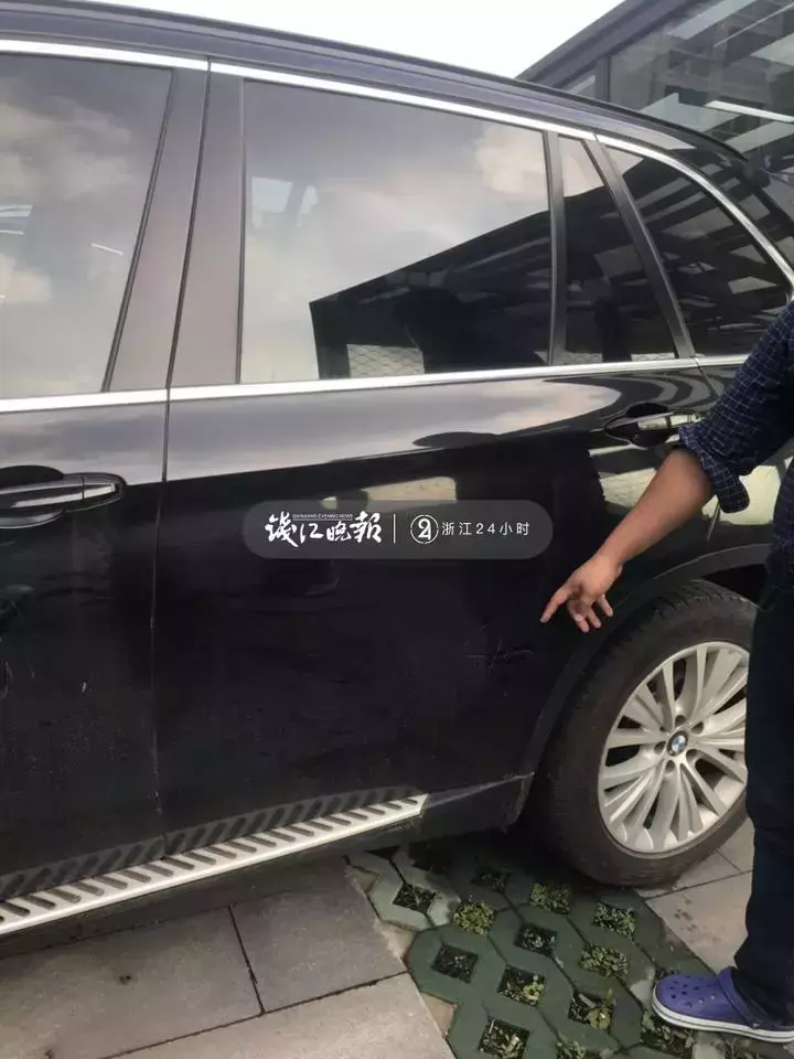 他指给记者看,宝马车的车门、车牌等处差不多有十几处骂人的英文字母划痕。