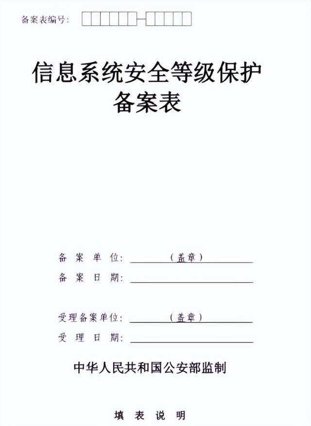 办理信息系统安全保护等级备案手续时,应当填写《信息系统安全等级保护备案表》。