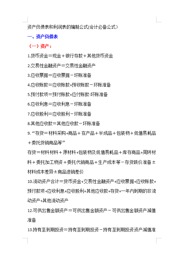 作为会计人员,你还记不住资产负债表和利润表的编制公式,那肯定是老填错报表!太耽误时间了,本来能下早班的,也熬夜到深夜。因此,想要做好会计,这资产负债表和利润表公式(全)是要认真掌握熟记于心的,也可以直接打印出来贴在桌边上。