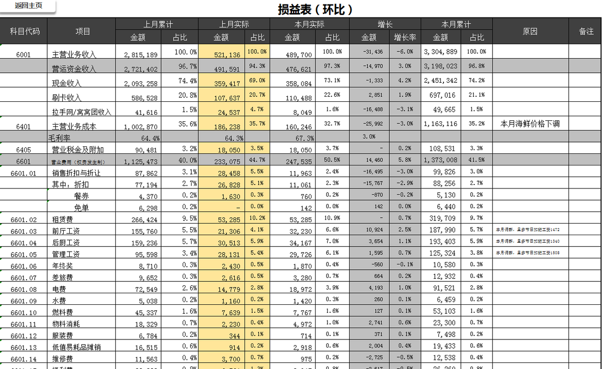 后来她才说,她为了让自己少加点班,编制了一套餐饮会计月报管理系统,各项损益表直接输入数据即可,最难得成本核算、预算表,她都设置好了,难怪现在可以这么早下班呢