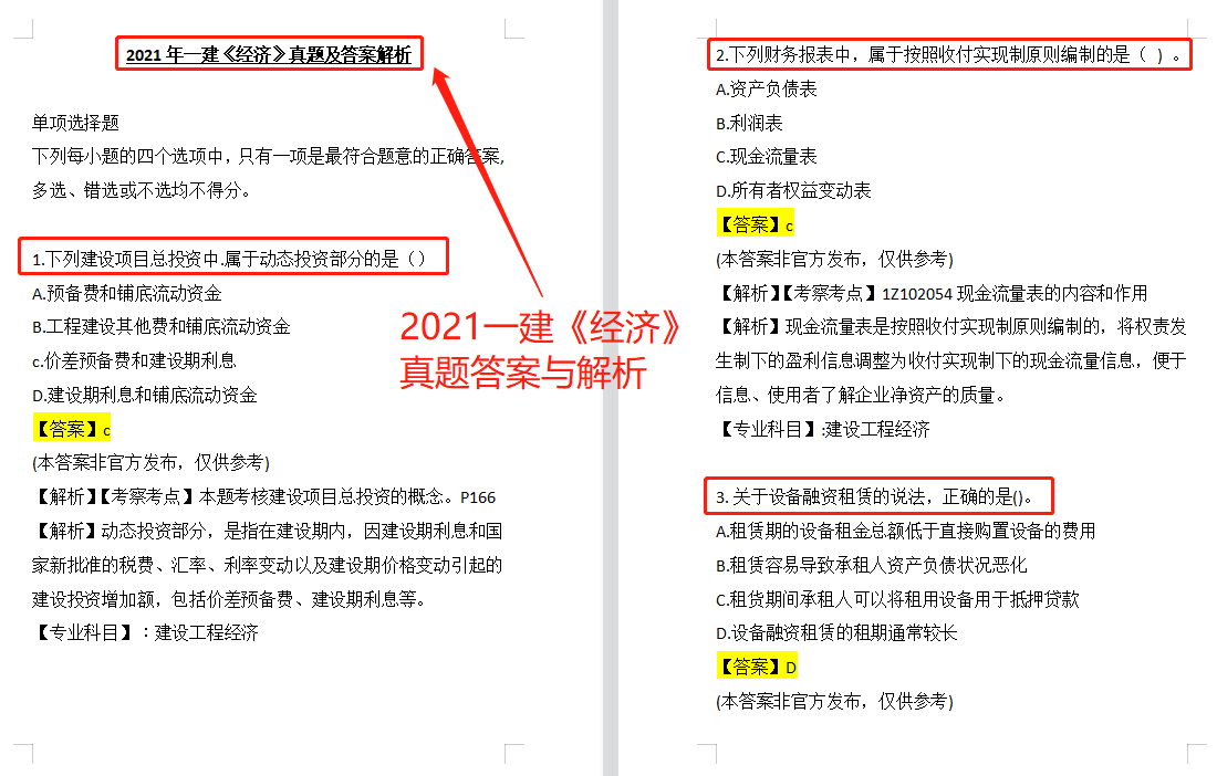 速来核对!2021.9.11一建《经济+法规》完整版真题参考答案与解析