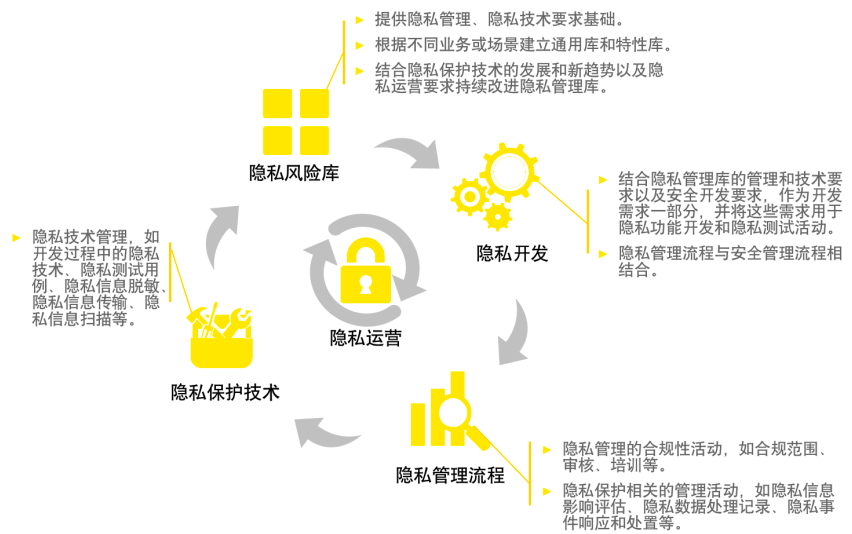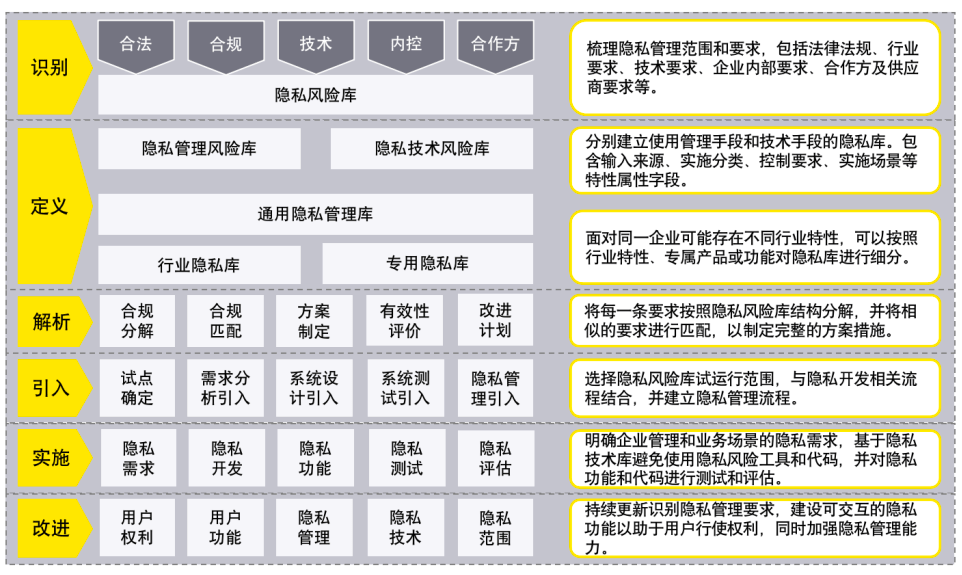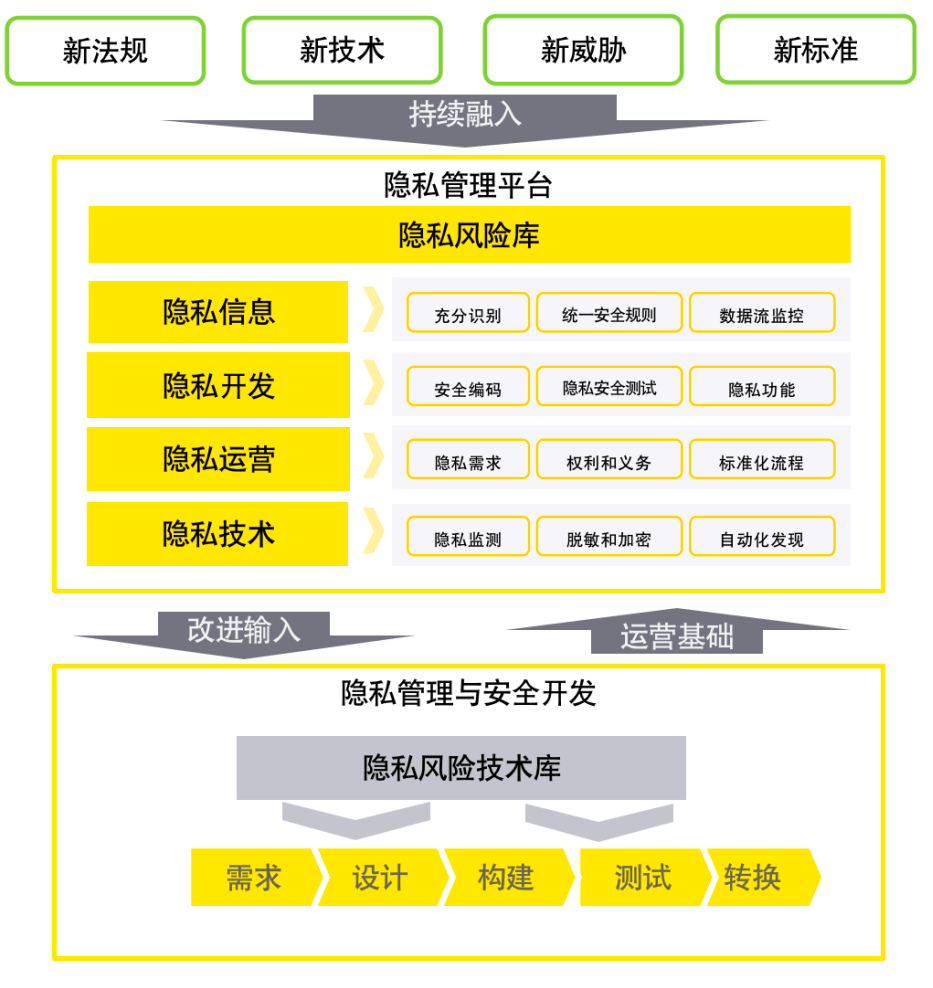 ► 改进:结合隐私管理团队在隐私运营、用户的使用反馈等入口,持续改进隐私管理能力。