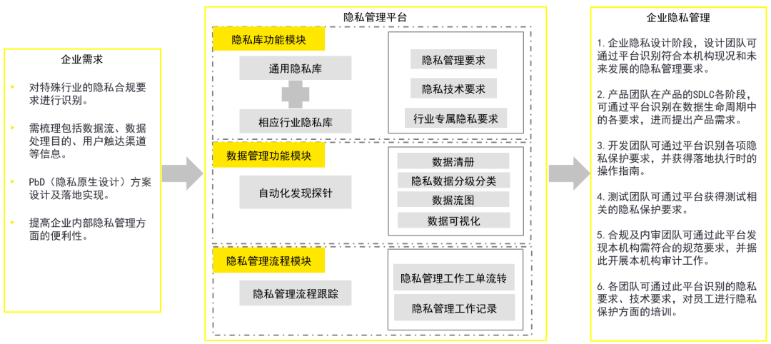 基于NIST隐私框架制定的隐私管理目录,基于隐私安全开发活动而建立的隐私管理平台和研发流程,能够帮助企业建立定制化的隐私管理能力。