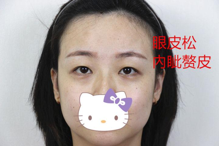 主要问题有两个:1、眼皮松;2、轻度的内眼角赘皮。