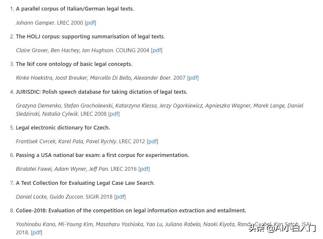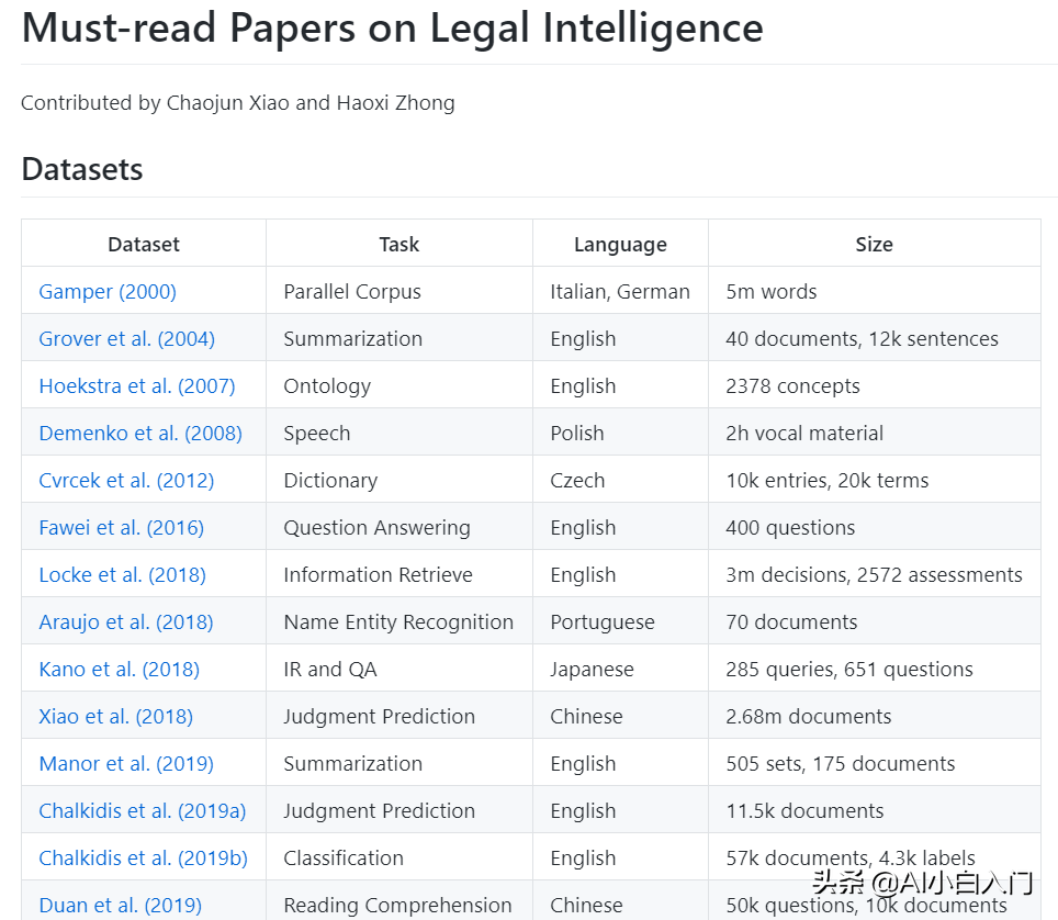 github发现一份整理的法律相关论文集,包含相关数据集。