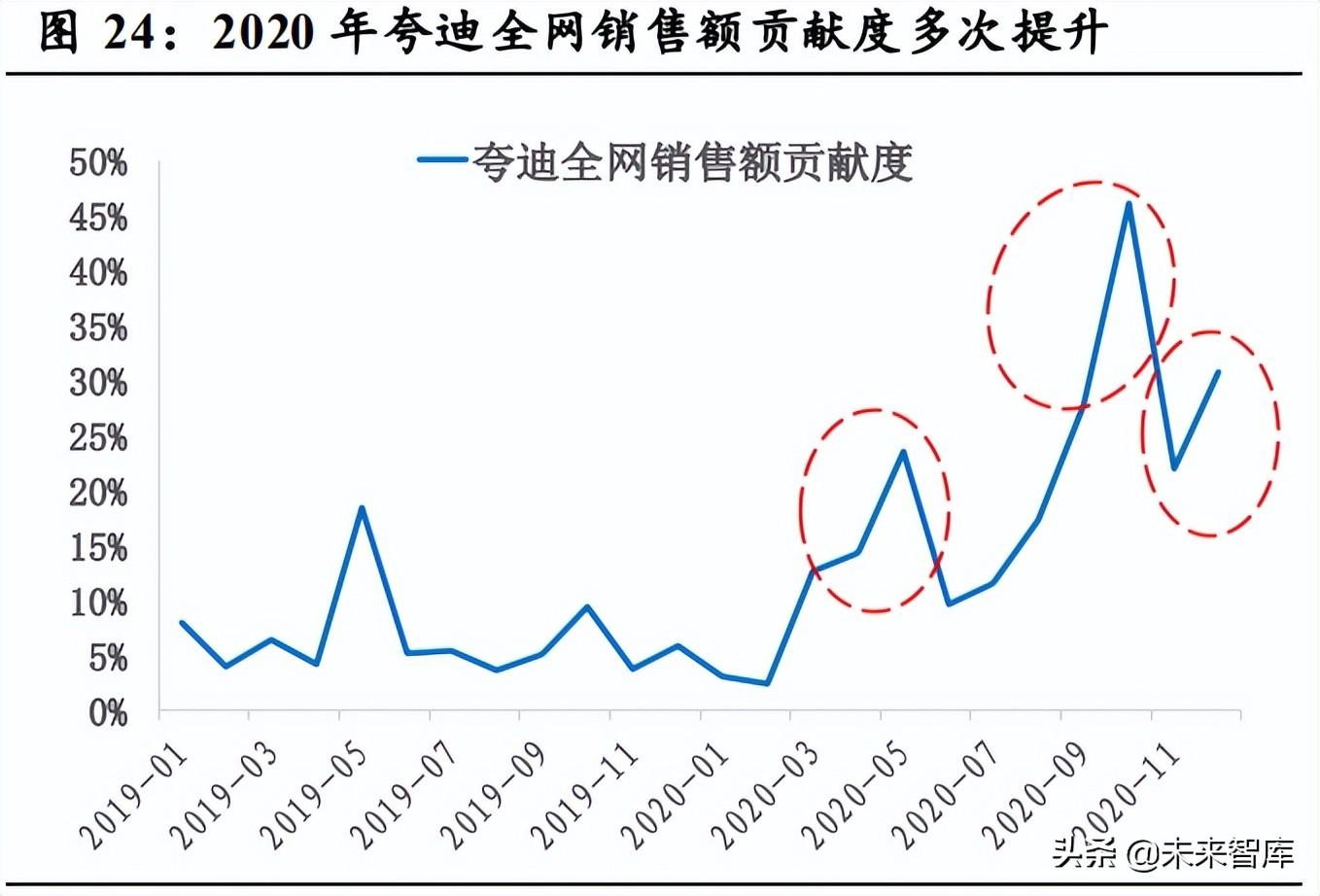 1)通过相关配套制度,提升创业团队的主观能动性:以华熙生物为例,2018 年 起公司调整内部架构,实现前台多品牌多事业部协作,公司在护肤品事业线上采用内 部“赛马机制”、自负盈亏,在原有润百颜品牌的基础上,相继孵化出夸迪、米蓓尔、 肌活等新品牌,2020 年新品牌夸迪培育成功,2020 年夸迪全网销售额占公司整体护 肤品业务的收入贡献度不断提升,从年初的 2%最高提升至 46%,贡献度提升的同时公 司估值亦快速切入上升通道;