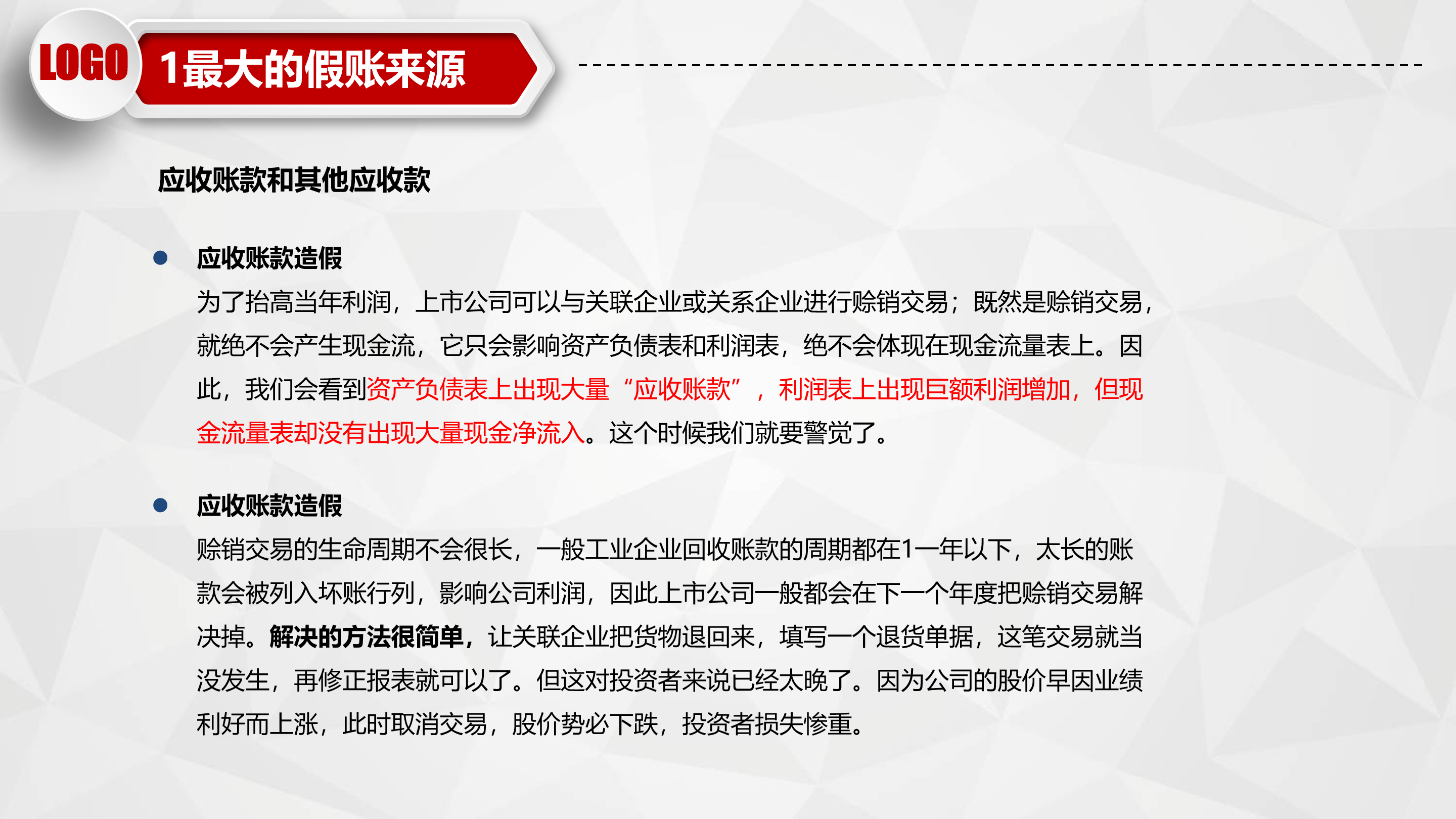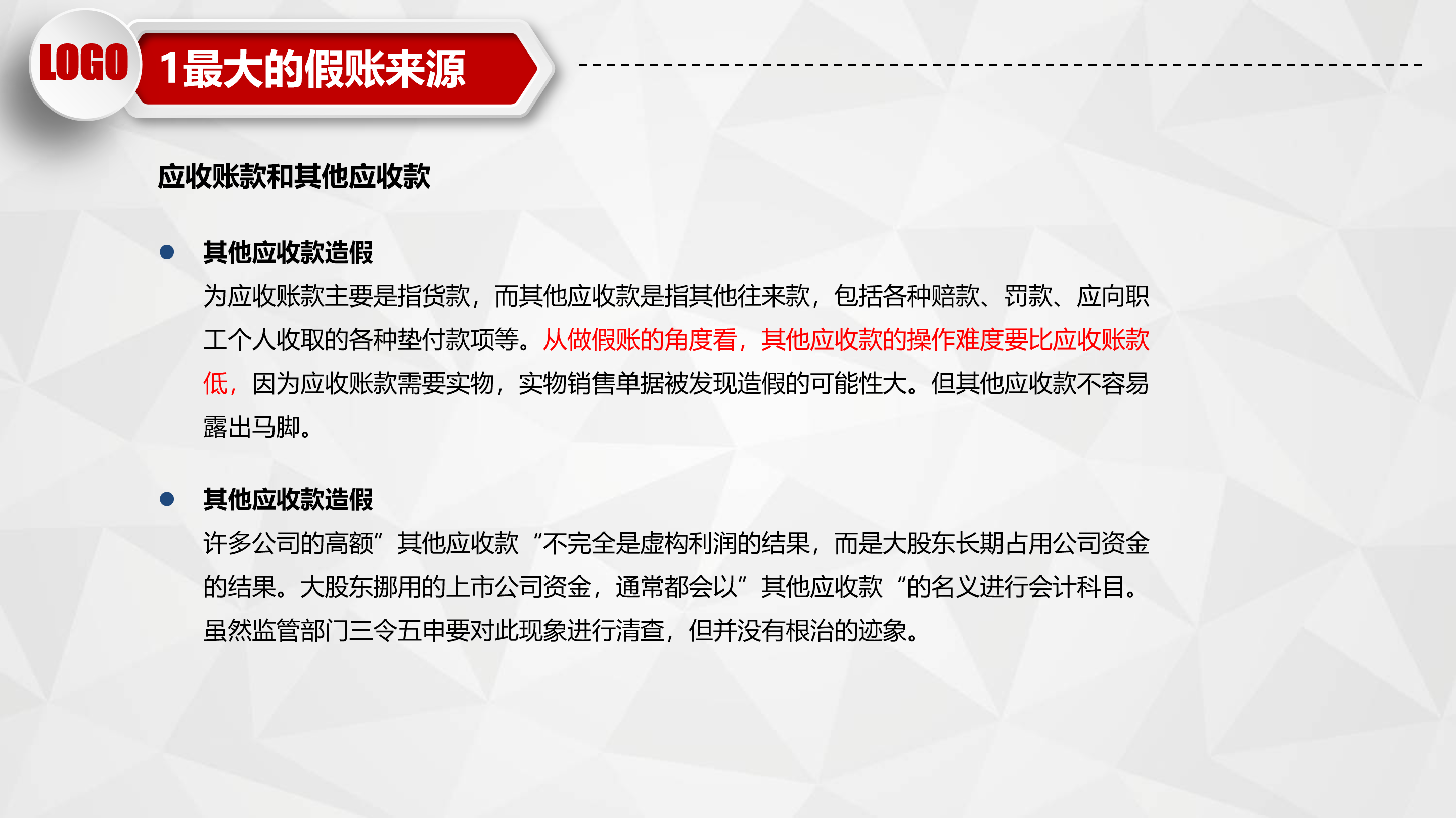 所以,企业财务造假的手段我们怎能不知?常见的财务造假科目我们怎能不知?识别企业财务造假的招数我们怎能不知?这都是在下面的PPT当中我们会看到的。