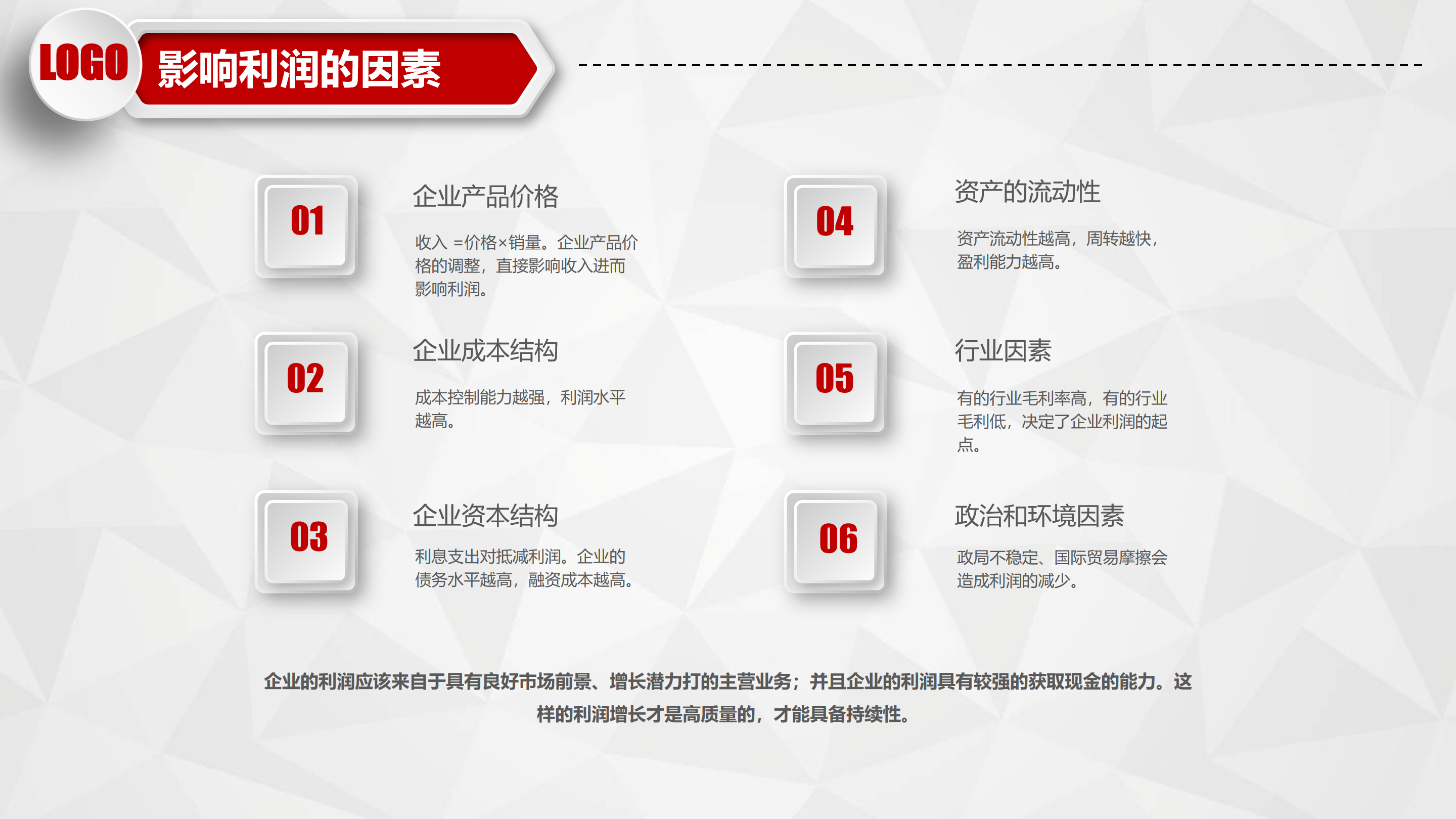 版权声明:我们致力于保护作者版权,注重分享,被刊用文章【利润表分析案例(50页PPT告诉你)】因无法核实真实出处,未能及时与作者取得联系,或有版权异议的,请联系管理员,我们会立即处理! 部分文章是来自自研大数据AI进行生成,内容摘自(百度百科,百度知道,头条百科,中国民法典,刑法,牛津词典,新华词典,汉语词典,国家院校,科普平台)等数据,内容仅供学习参考,不准确地方联系删除处理!;