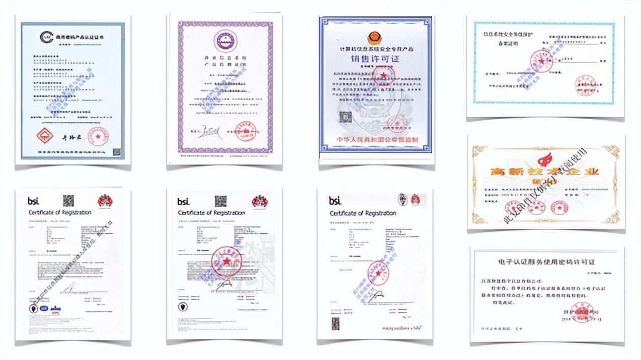 e签宝具备国家密码管理局颁发的从事商用密码行业的资质证书《商用密码产品认证证书》,通过了中国信息通讯研究院可信云服务认证和公安部信息系统安全等级保护(第三级)认证,取得了 ISO 27001《信息安全管理体系认证证书》、ISO 27018《公有云个人信息保护认证》,ISO 27701《隐私信息管理体系认证》和《计算机信息系统安全专用产品销售许可证》,参与了《电子合同订立流程规范》等国家标准的制定,同时还是安全可靠产业技术联盟成员单位和浙江省“最多跑一次”改革唯一指定电子签名供应商。