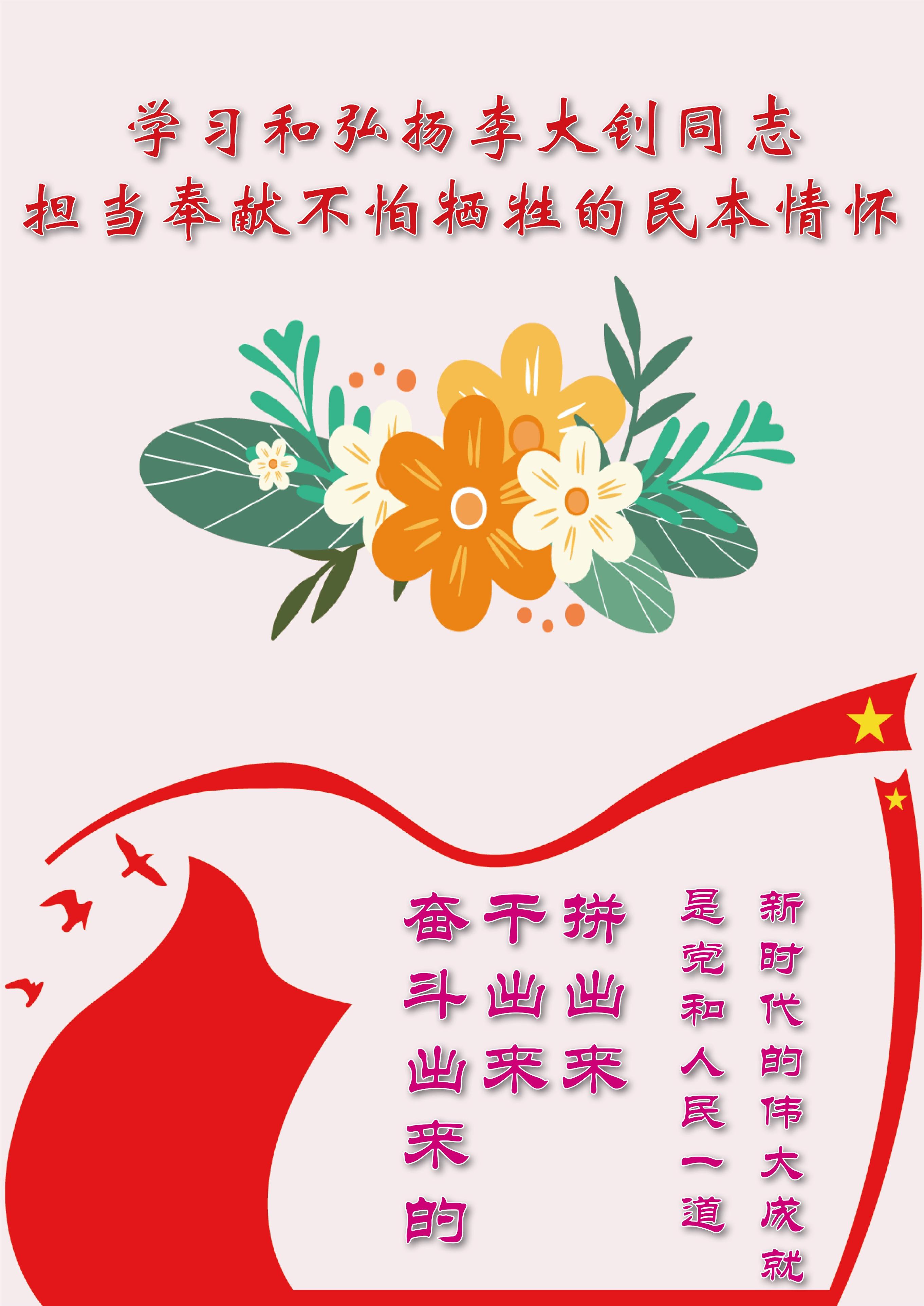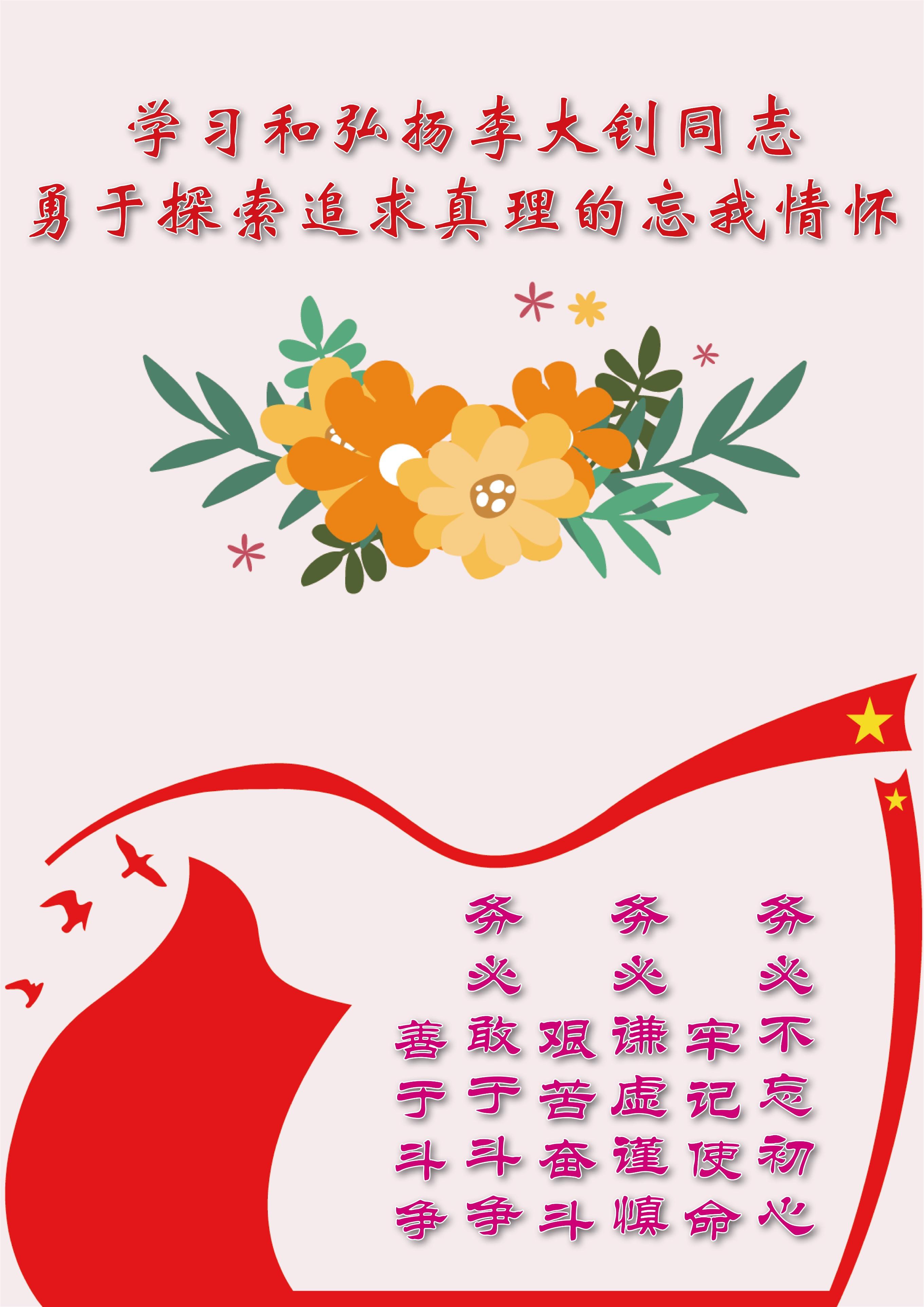 中国共产党第二十次全国代表大会胜利召开,为全面建设社会主义现代化国家、全面推进中华民族伟大复兴而团结奋斗的号角已经吹响。让我们深入学习宣传贯彻二十大精神,学习和弘扬李大钊矢志不渝践行的人民情怀,铭记历史、不忘初心,振奋精神、敢于斗争,艰苦奋斗、担当作为,用实际行动践行党和人民的意志,全力投身中国式现代化强国进程中,以只争朝夕、埋头苦干的精神,奋进新征程,奉献新时代,创造新伟业,共同迎接更加美好的明天。