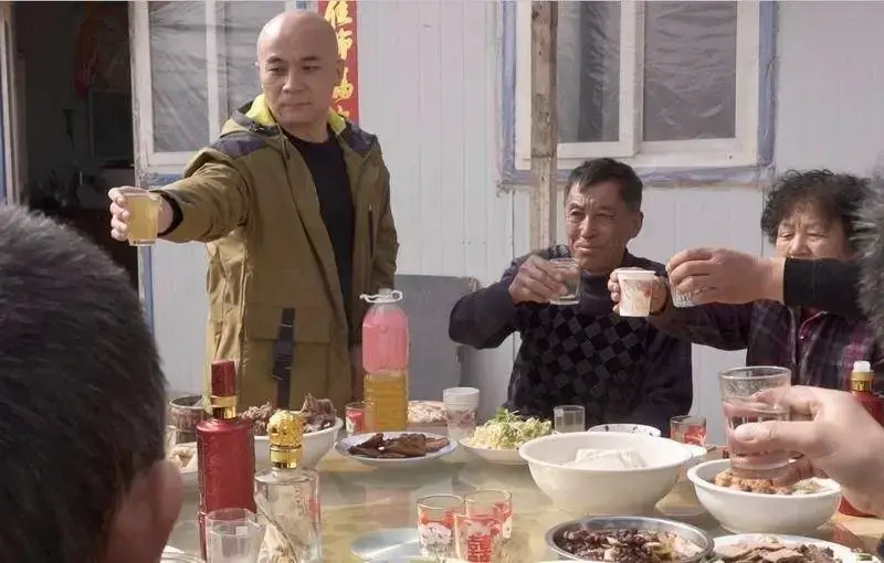何国强回家后和父母、亲戚吃饭,他端起酒杯感谢大家。图片由作者拍摄