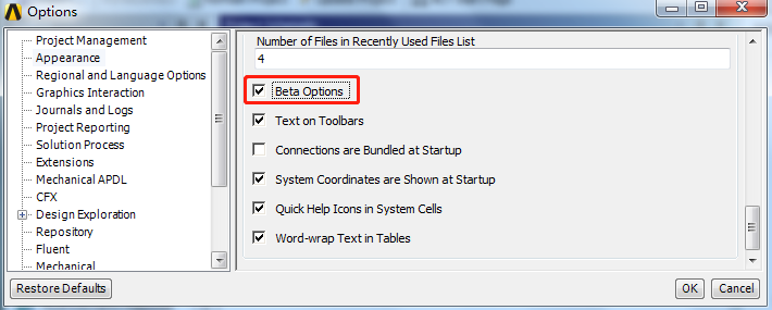 扩展显示方法如下。首先在WB界面选择标题栏Tools——Options,出现Options对话框,选择Appearance便签,勾选Beta Options。
