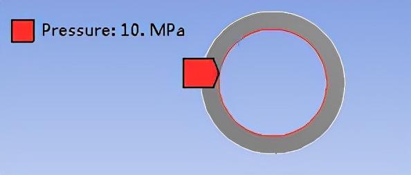 添加边界条件:选择圆环内边,施加10MPa压强。