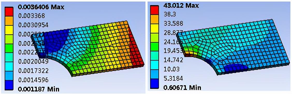 添加结果:分别添加截面上的总变形和等效应力,计算后见下图。