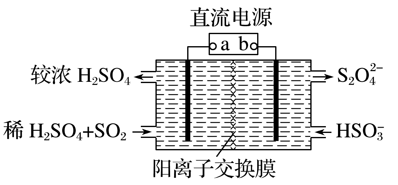 解析 由装置左侧反应可知,电极上SO2发生反应后生成H2SO4,电极反应式为SO2-2e-+2H2O===SO+4H+,为电解池的阳极,故a极为电源的正极,A项错误,C项正确;在阴极上HSO得电子生成S2O,根据两者中S的化合价可知,1molHSO得到1mol电子,B项错误;电解池中阳离子由阳极室通过离子交换膜进入到阴极室,D项错误。