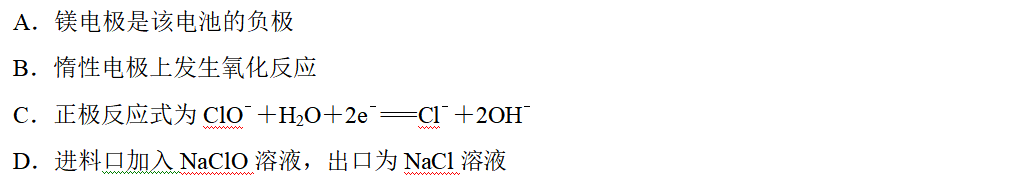 解析 根据化学方程式知Mg是还原剂作负极,ClO-在惰性电极上得电子发生还原反应,生成Cl-。