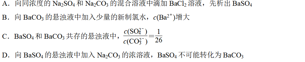 9.25℃时,Ksp(BaSO4)=1×10-10,Ksp(BaCO3)=2.6×10-9。该温度下,下列说法不正确的是( )