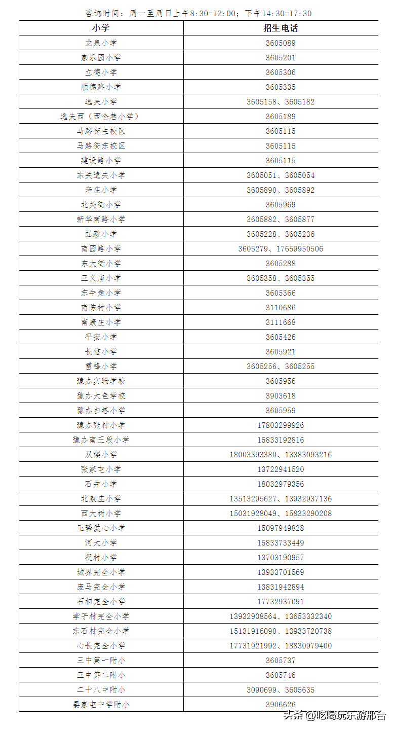 注:1.襄都区内(包括邢东新区管辖的豫让桥街道办事处、祝村镇,不包括邢台经济开发区管辖的东汪镇、王快镇、火炬街道办事处)的适龄儿童父母或其他监护人要在规定时间内参加报名。