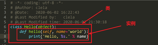 Hello 是一个 class,它的类型就是 type ,而 h 是一个实例,它的类型就是class Hello 。