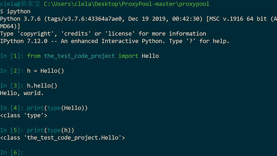 if __name__ == '__main__':h = Hello()h.hello()print(type(Hello))print(type(h))运行结果如下: