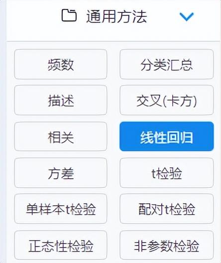 SPSSAU左侧仪表盘“通用方法”→“线性回归”;