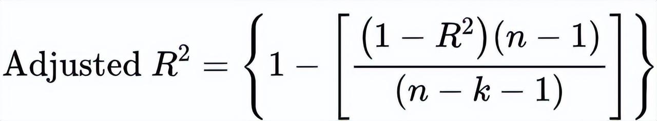 其中,k为自变量的个数;n为观测项目。自变量数越多,与R2的差值越大;例: