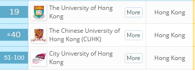 香港大学跻身排名前20,位列第19位,是表现最好的中国大学。