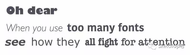 使用超过 3 种不同的字体会使页面看起来缺乏结构化和不专业。 除开用于打造风格化的标题,正文建议使用大家更熟悉标准字体,可以让我们更快地读取有效信息。
