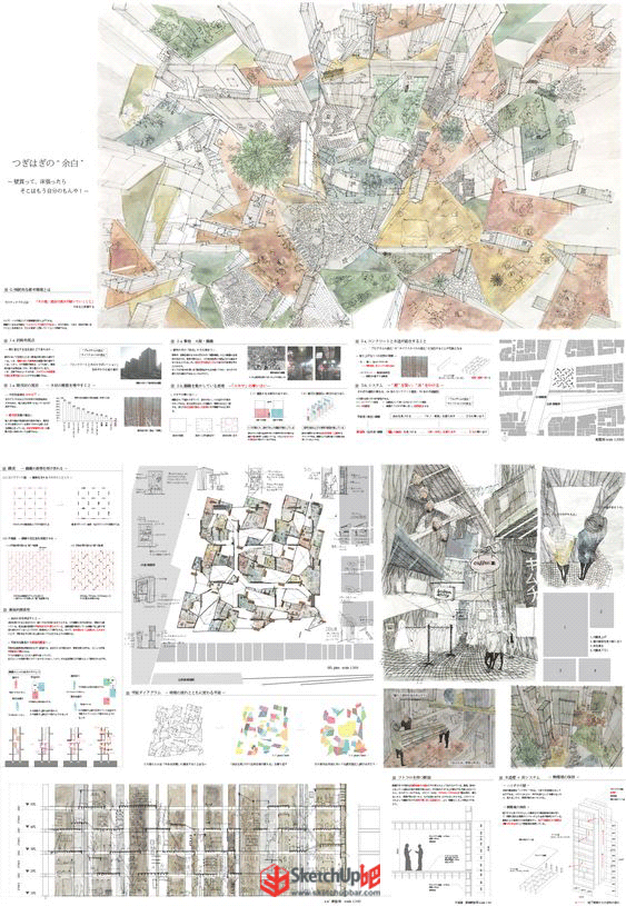 我们在排版时,表现图之间的秩序性应当作为构图的基础,把这种关系作为隐性结构,再通过一些版式设计原则,比如三分法、黄金比例、斐波那契数列...做出可以“讲故事”的图纸表现,让你的设计事半功倍。