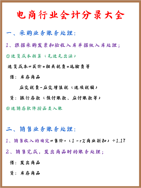 所以就把电商行业的账务处理都整理了出来,包含每一个特别小的点,退货、换货、第三方ZF平台......都有详细的解说
