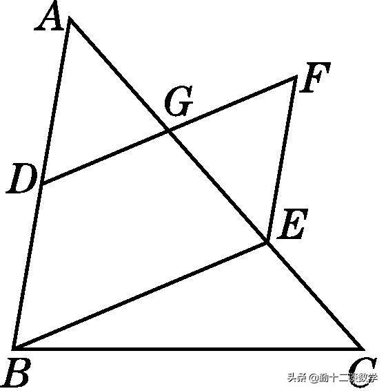 分析:证明DE+FG=BC可以利用截长补短法,本题通过一组对边平行且相等构造平行四边形,然后再证明一次三角形全等即可。