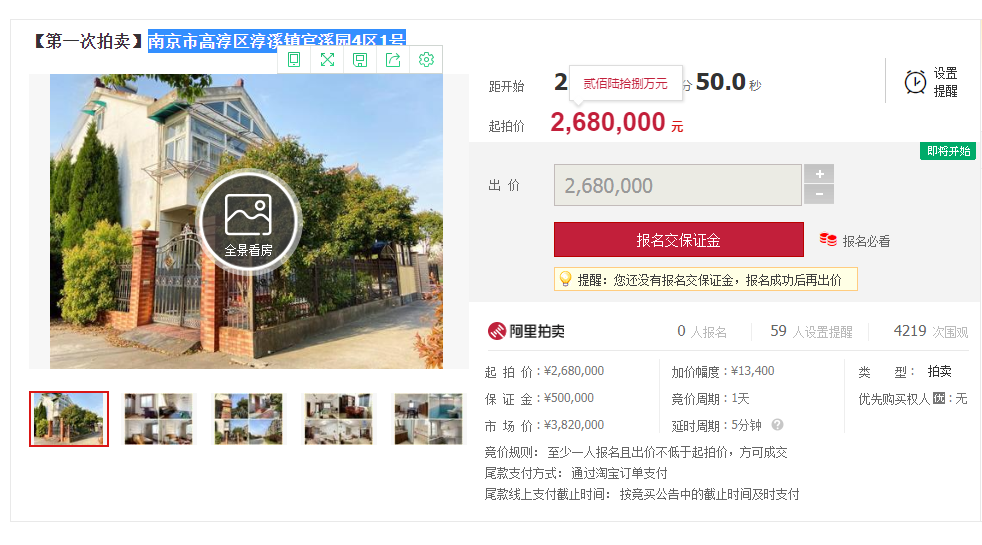 网址:https://sf.taobao.com/court_item.htm?spm=a213w.7398554.pagination.2.8l5eWP&user_id=3204190086&auction_start_seg=-1&page=1
