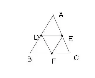 性质1:中位三角形的三条边,分别平行于原三角形对应的三条边,且分别等于对应三条边的一半。