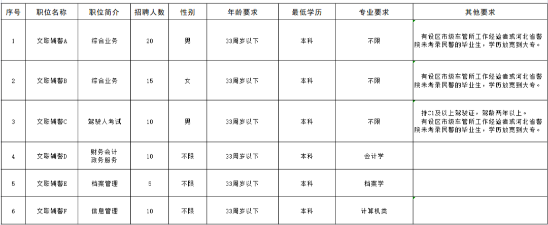 共招聘车管所警务辅助人员70名,详情请见《职位表》。