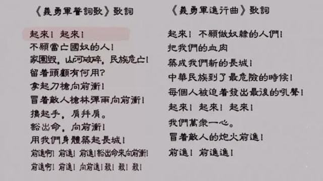 “起来,不愿做奴隶的人们,把我们的血肉,筑成我们新的长城……”