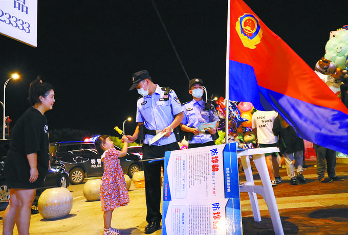 8月21日,辽宁省辽阳市公安局文圣分局民警深入夜市,开展防范电信网络诈骗宣传,提高群众防范意识。