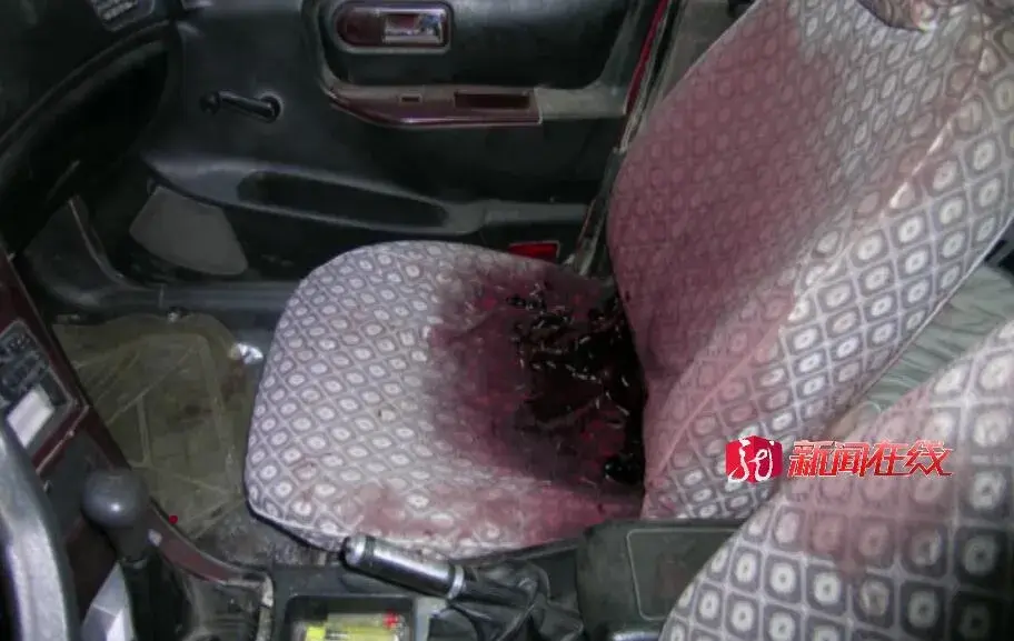 这是一台吉利牌出租车,警方到现场后,发现车门开着,棚顶灯亮着,出租车的后排座上有一名死者。