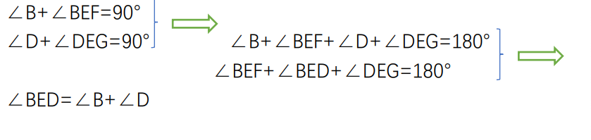 ∴∠D+∠B+∠FED+∠BEF=360°(周角)