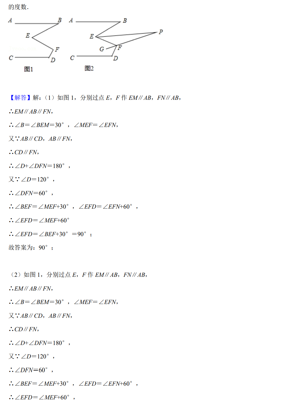 法二:过点E作EF∥AB