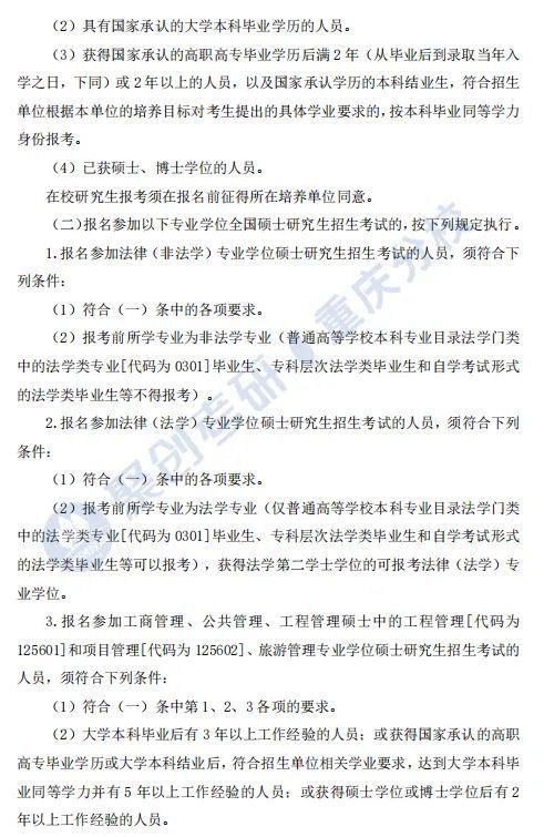 ⭕3.报名参加工商管理、公共管理、工程管理硕士中的工程管理[代码为125601]和项目管理[代码为 125602]、旅游管理专业学位硕士研究生招生考试的人员,须符合下列条件: