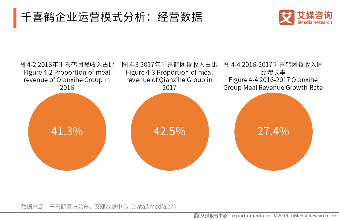 2016年千喜鹤收入230亿元,其中团餐收入95亿元。2017年,在团餐业态整体高速增长的市场环境下,千喜鹤围绕餐饮食品产业链的团餐服务、粮油贸易、肉食品加工、物流配送、商业连锁、食安监管、管理咨询、品牌管理、信息技术、商业地产等业态全面发展,实现全年创收总额285亿元,而作为千喜鹤核心经营领域的团餐业态2017年创收121亿元,同比增长27.4%。