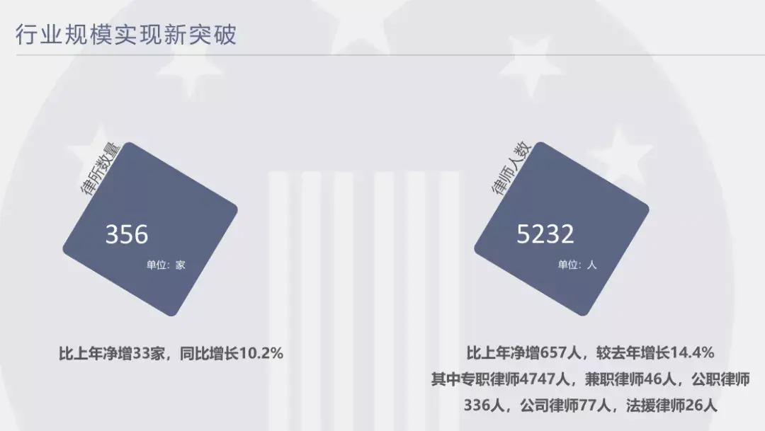 一家律所执业人数超过百人,两家本地律所在苏州市域范围内的总、分所执业人数超过百人,总、分所合计创收突破亿元。