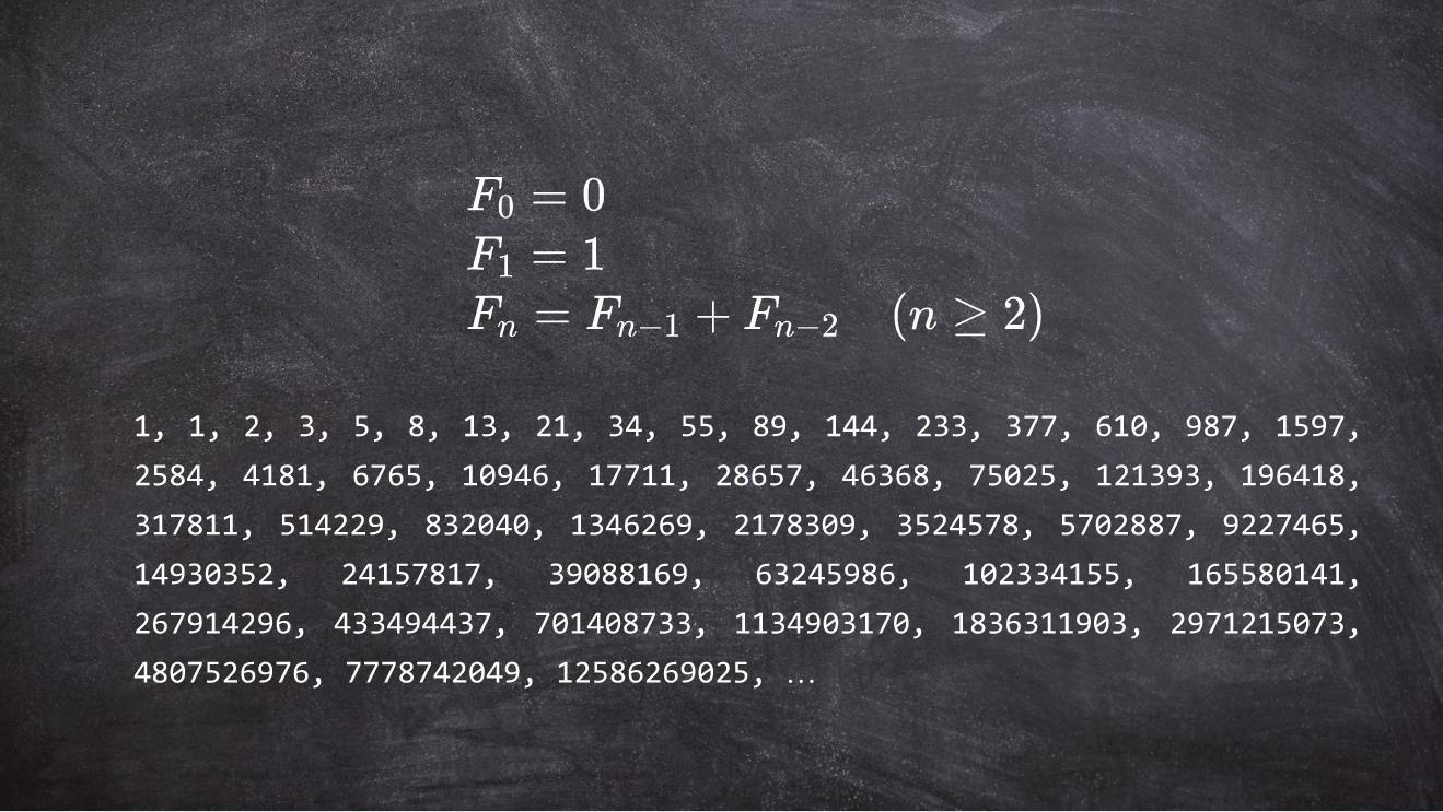 斐波那契数简单地由满足下面这个简单的递归方程构成,并生成下面这个趋于无穷大的数列:
