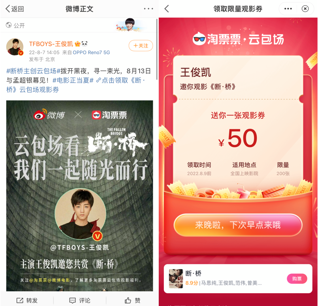目前看来,这些尝试最大的价值是,真正打通传播和转化,把线上流量实打实地送进影院。