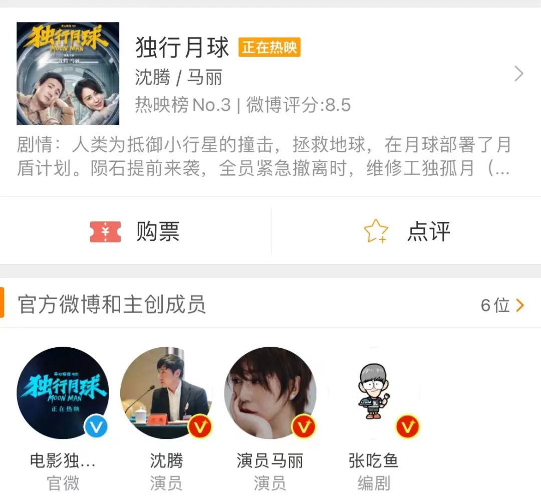 与此同时,微博常在重要档期策划线下活动,助力电影引爆现场。《独行月球》《明日战记》《外太空的莫扎特》就依托暑期云包场,成功辐射至潜在观众。其中,#沈腾马丽请你看独行月球#的微博话题,成功挤进文娱热搜榜。