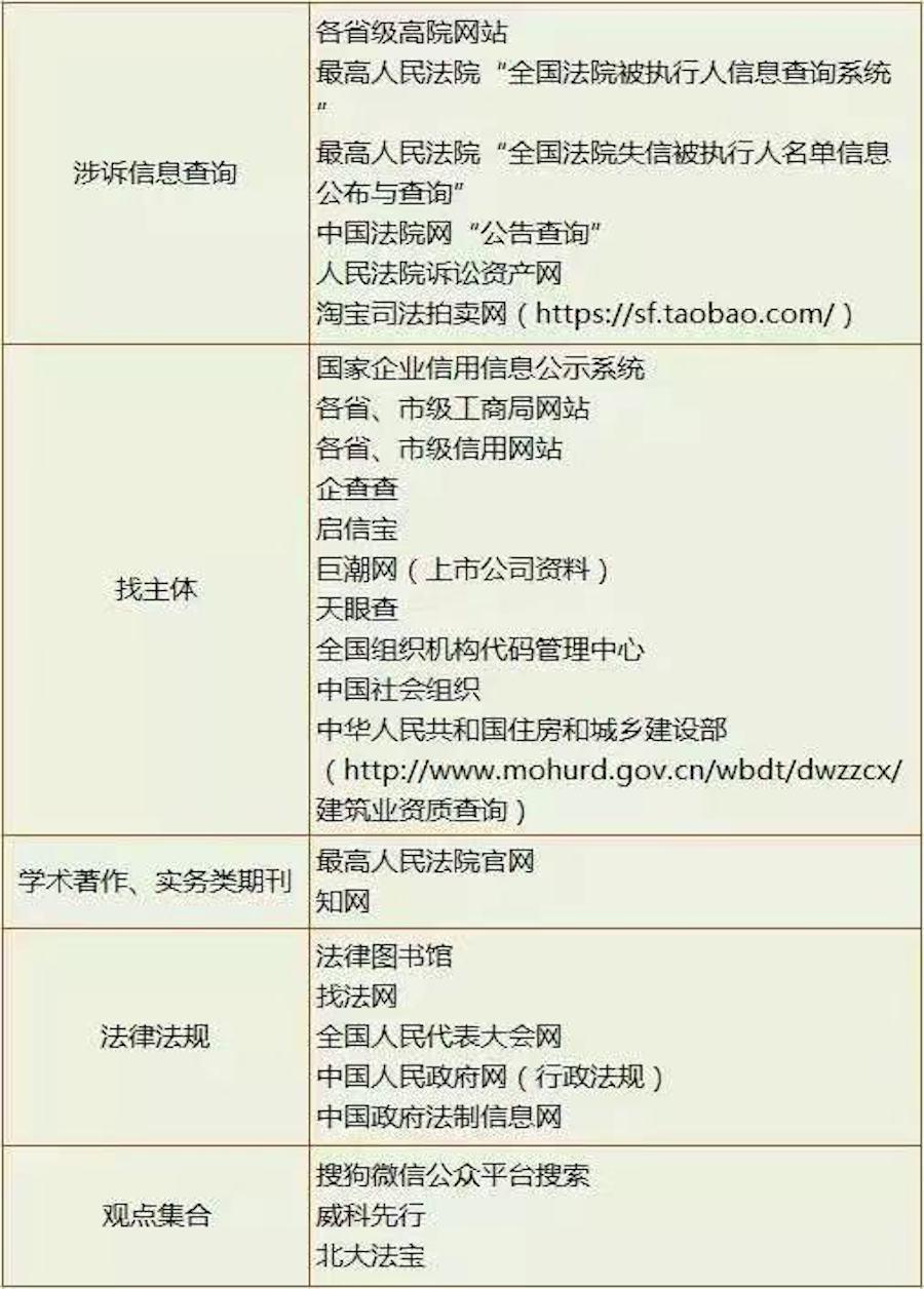 除了上述检索工具,律师日常工作里常常需要检索的内容和相关的工具如下: