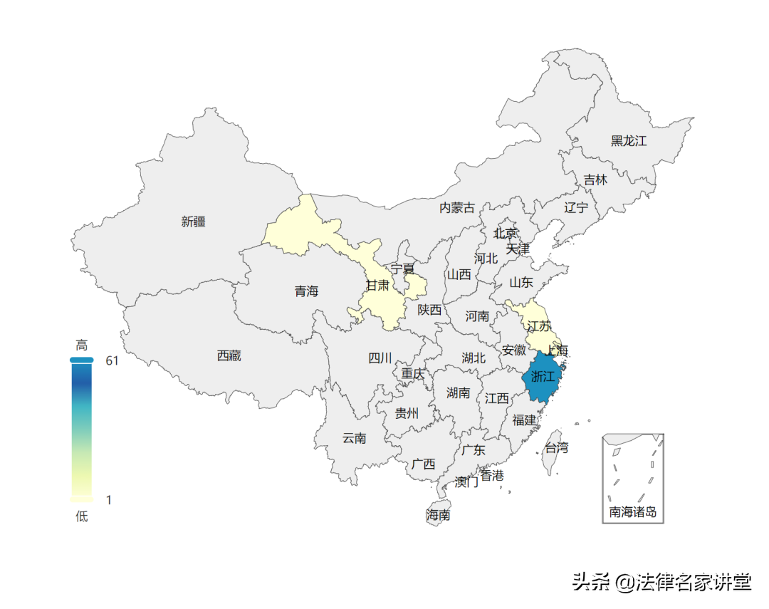 笔者发现,所统计的68起案件中,有61起来自浙江省,上海5起,甘肃、江苏各1起。