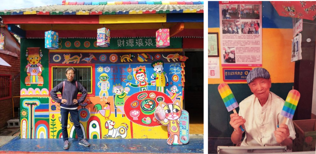 图2 彩虹眷村游客留影及彩虹爷爷的互动图