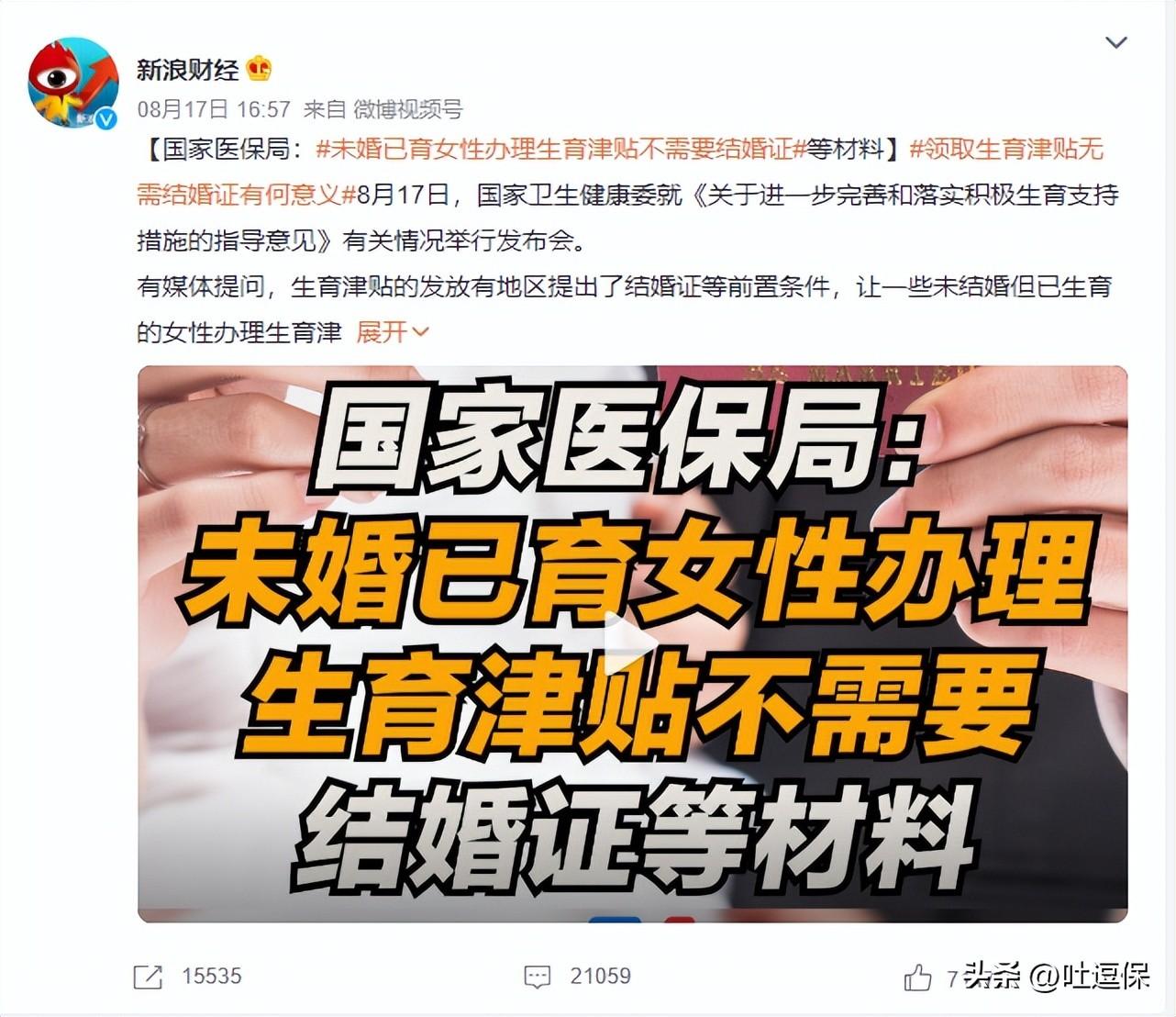当然,这并不意味着“不结婚可以领生育津贴”这件事,代表着国家鼓励未婚先育。